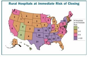 Below is a state-by-state listing of the number of rural hospitals at risk of closure in the next six to seven years and at immediate risk of closure over the next two to three years.